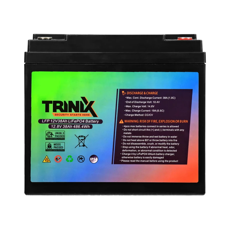 Акумуляторна батарея Trinix LFP 12V38Ah LiFePo4 ємністю 38 Аг, з вихідною напругою 12 В, літій-залізо-фосфатна батарея (LiFePO4) - різновид літієвих акумуляторних батарей, які останнім часом все активніше впроваджуються в промисловість і побут, а також активно використовуються в автономних системах електропостачання, коли є необхідність проектування сучасних вітрогенераторів, сонячних батарей.