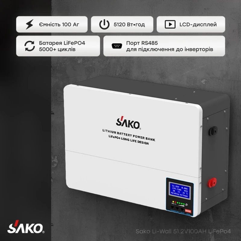 Акумуляторна батарея літій-залізо-фосфатна 100Аг 51.2В 5120Втг Sako Li-Wall 51.2V100AH LiFePo4