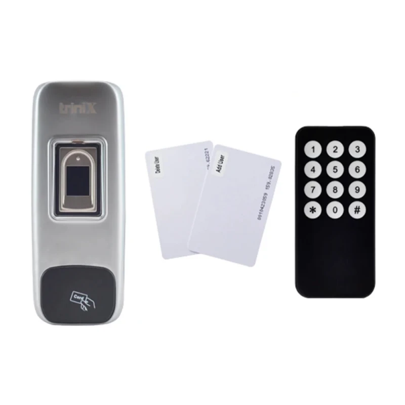 - Налаштування та додавання карток, відбитків пальців до бази відбувається з ІЧ-пульта дистанційного керування – входить до комплекту. Також у комплекті дві майстер-карти для додавання/видалення карток.