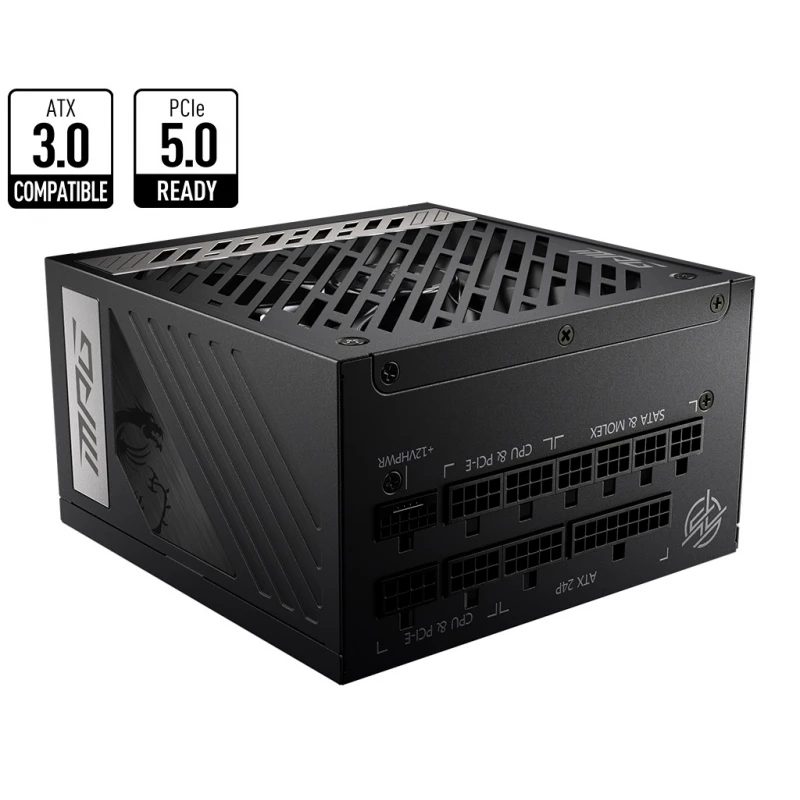 Серія MPG демонструє найкраще в геймерах, дозволяючи повноцінно виражати кольори з розширеним керуванням RGB-підсвічуванням і синхронізацією між пристроями. Блок живлення MPG виглядає як витвір сучасного мистецтва та повністю демонструє харизму серії MPG. СУМІСНИЙ З ATX 3.0 Блок живлення має роз’єм, що сумісний із PCIe 5.0 і Intel PSDG (Керівницство з розробки блоків живлення) ATX 3.0. Цей блок живлення може витримати до 2-кратного короткочасного збільшенння загального живлення та 3-кратного короткочасного збільшеня живлення відеокарти.