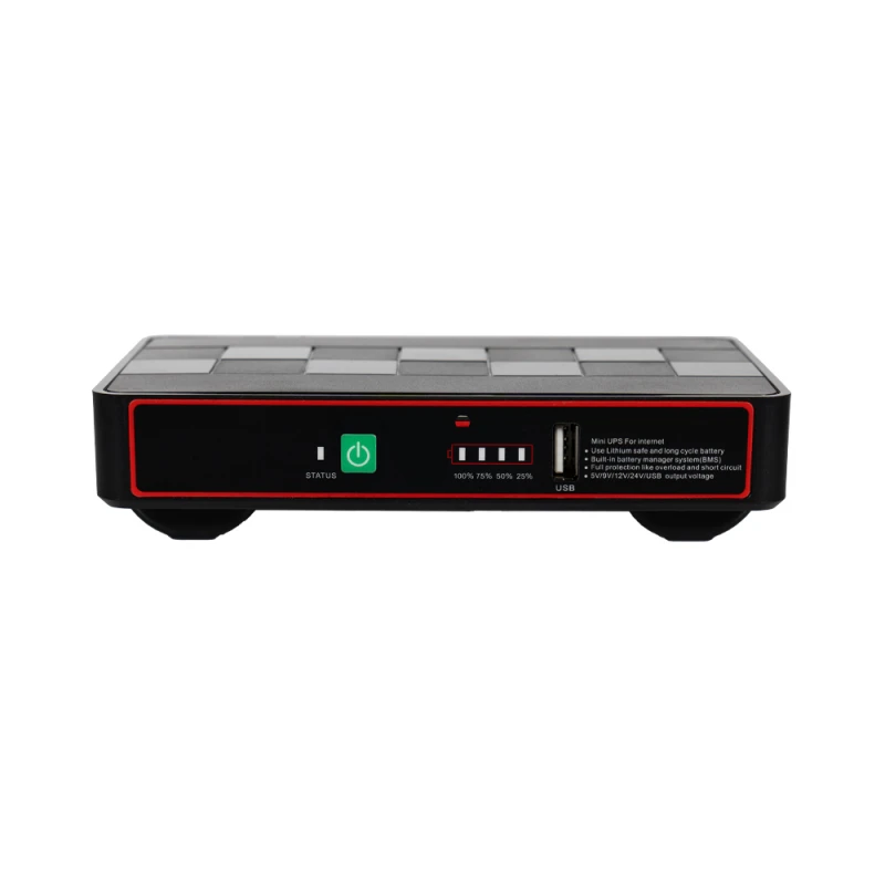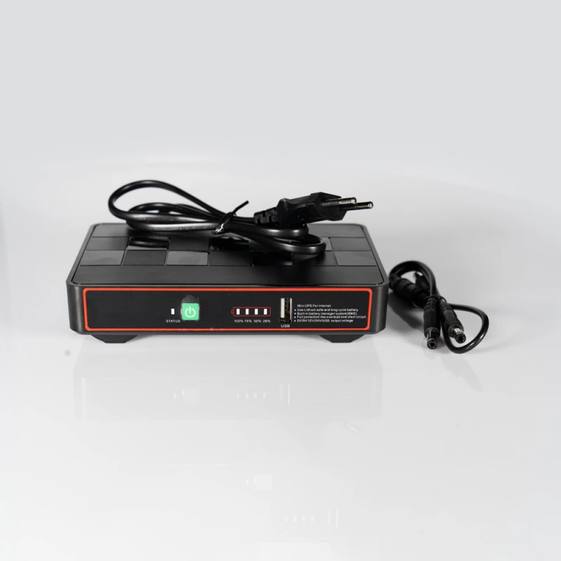 Джерело безперебійного живлення з 2 вбудованими акумуляторними батареями LiFePO4 ємністю по 6000 мАг (38 Втг) (загальна ємність 12000 мАг); вихідні інтерфейси USB, DC, пасивне PoE, вихідна напруга 5 В + 9 В + 12 В + 24 В (PoE); вихідний струм та потужність кожного виходу: 5 В: 2 А/10 Вт, 9 В: 10 А/9 Вт, 12 В: 10 А/12 Вт, PoE: (0.5 А/24 В)/18 В; максимальна вихідна потужність 18 Вт; вхідна напруга AC 100-240 В/50-60 Гц; розміри 160 / 105 / 36.5 мм, вага 500 г