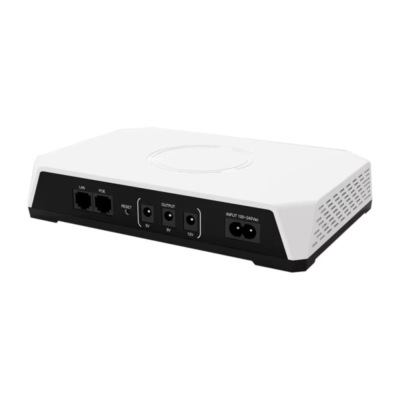 Джерело безперебійного живлення з 4 вбудованими акумуляторними батареями LiFePO4 ємністю 5000 мА·год (загальна ємність 20000 мА·год); максимальна вихідна потужність 36 Вт; вихідні інтерфейси USB, DC *3, PoE, вихідна напруга 5 В + 9 В + 12 В + 24/48 В (PoE); вихідна напруга/струм кожного виходу: USB/DC1: 5В/3А, DC2: 9В/3А, DC3: 12В/3А, PoE: 24В/1А, 48В/0.5А; вхідна напруга AC 100-240 В/50-60 Гц; розміри 210 / 130 / 40 мм, вага 750 г. У комплекті мережевий кабель живлення 220В для мініДБЖ довжиною 83 см з вилкою, розгалужувач живлення DC-2 DC довжиною 35 см з роз’ємами