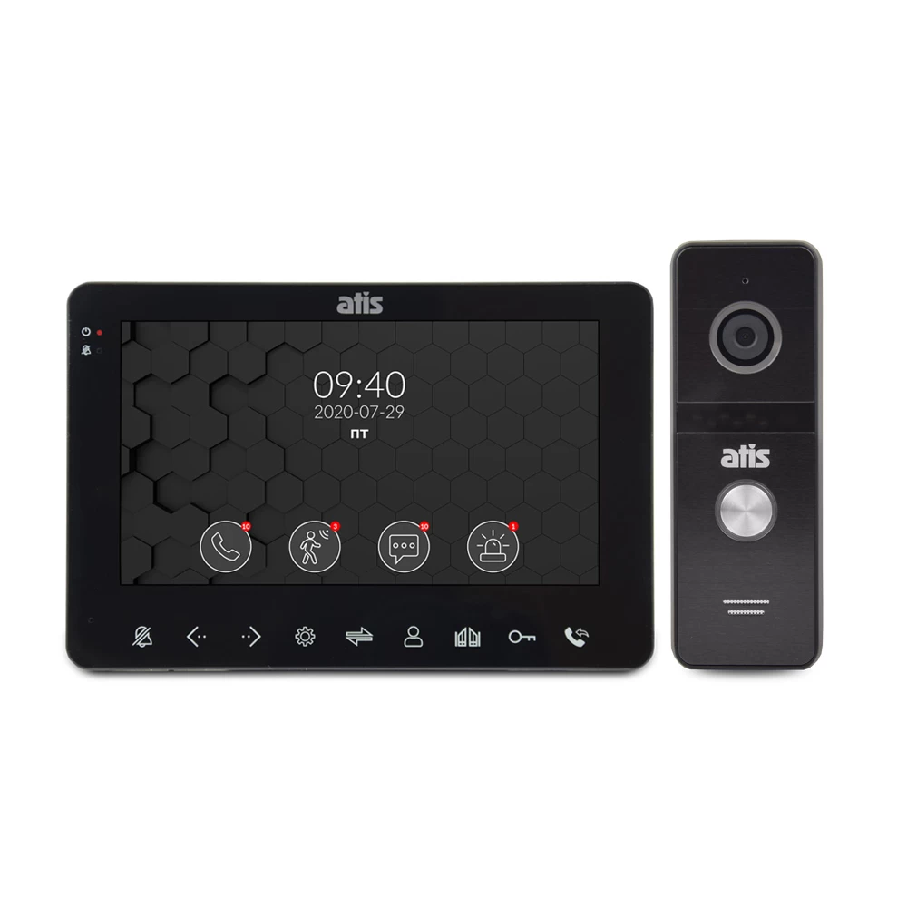 Комплект відеодомофона ATIS AD-780FHD-B Kit box: відеодомофон 7" з детектором руху і відеопанель 2 Мп