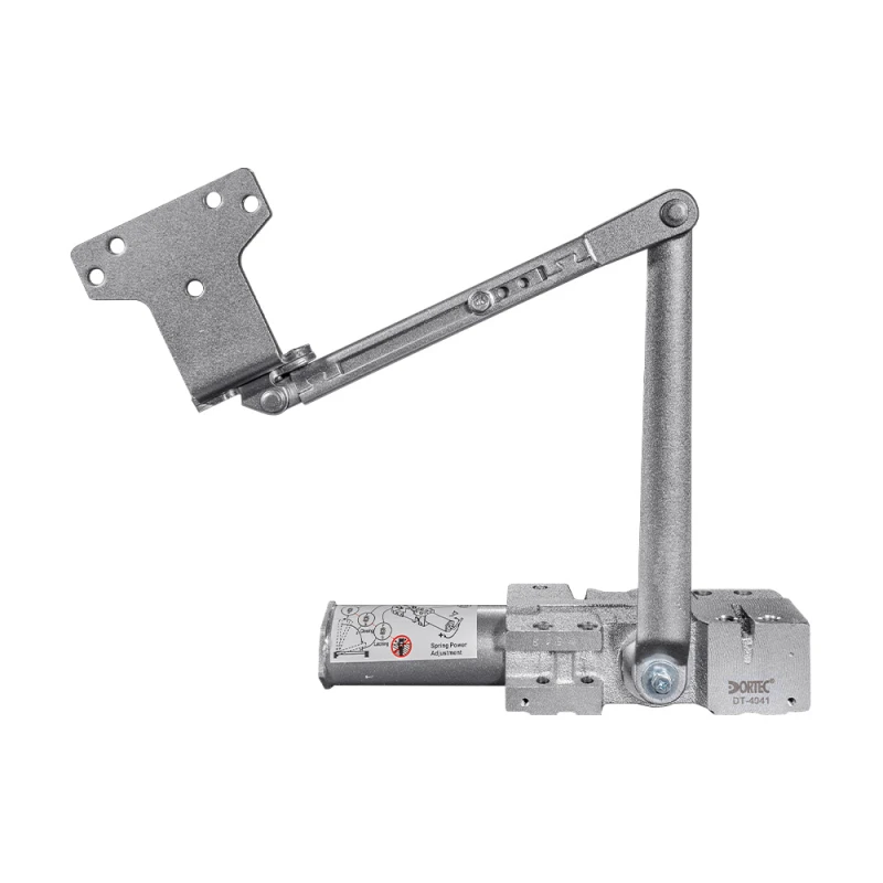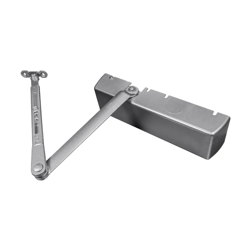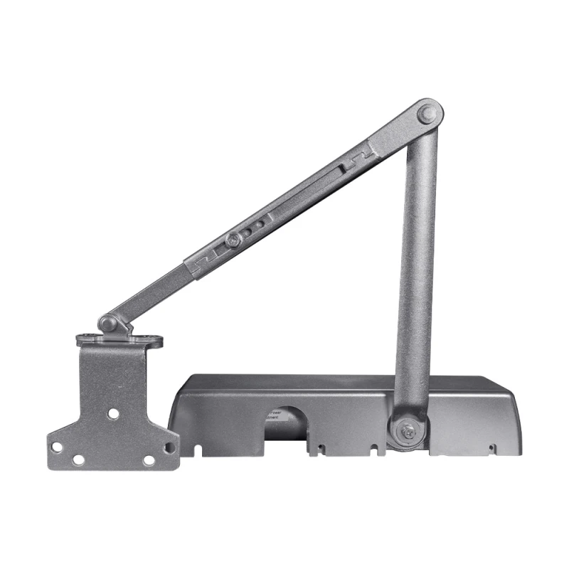 Дверний доводчик; конструкція тяги – складаний важіль; максимальна маса дверного полотна 180 кг; максимальна ширина дверного полотна: для внутрішніх дверей 1.5 м, для зовнішніх дверей 1.2 м; товщина дверей 45 мм; регулювання: кута відчинення дверей, зусилля за вагою дверей, швидкості зачинення та дохлопу; розміри 280 / 90 / 50 мм; вага 3.8 кг; колір срібний