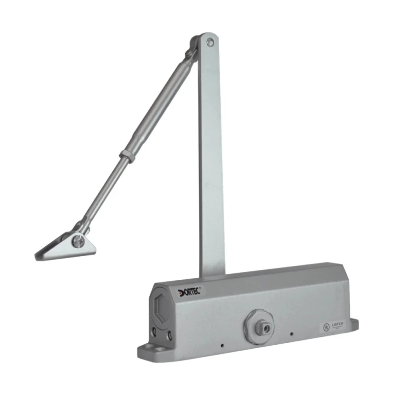 DT-514H – дана модель доводчика від ТМ Dortec призначена для монтажу на важкі зовнішні та внутрішні двері. Пристрій універсальний і може встановлюватися як на лівосторонні, так і правосторонні двері. Відрізняється високою надійністю та довговічністю роботи з ресурсом циклічності до 1 млн циклів. Зусилля розкриття складає 45-85 кг. Є функція регулювання зусилля закривання, швидкості закриття та дохлопу, а також утримання дверей у відкритому положенні під кутом від 85°.