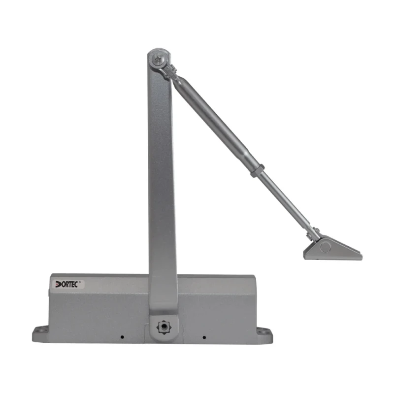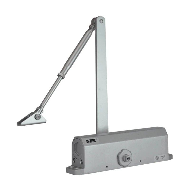 DT-536H – дана модель доводчика від ТМ Dortec призначена для монтажу на важкі зовнішні та внутрішні двері. Пристрій універсальний і може встановлюватися як на лівосторонні, так і правосторонні двері. Відрізняється високою надійністю та довговічністю роботи з ресурсом циклічності до 1 млн циклів. Зусилля розкриття складає 65-150 кг. Є функція регулювання зусилля закривання, швидкості закриття та дохлопу, а також утримання дверей у відкритому положенні під кутом від 85°.