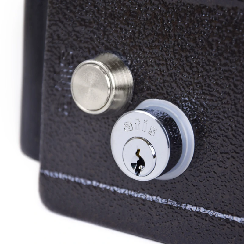 ATIS Lock B – універсальний накладний електромеханічний замок з пофарбованого металу для внутрішнього встановлення. Замок коричневого кольору. Призначений для металевих або дерев'яних дверей. Тип встановлення у напрямку зачинення дверей: ліворуч / праворуч.