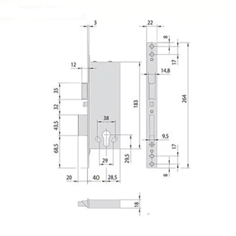 - Замок підходить для правих та лівих дверей.