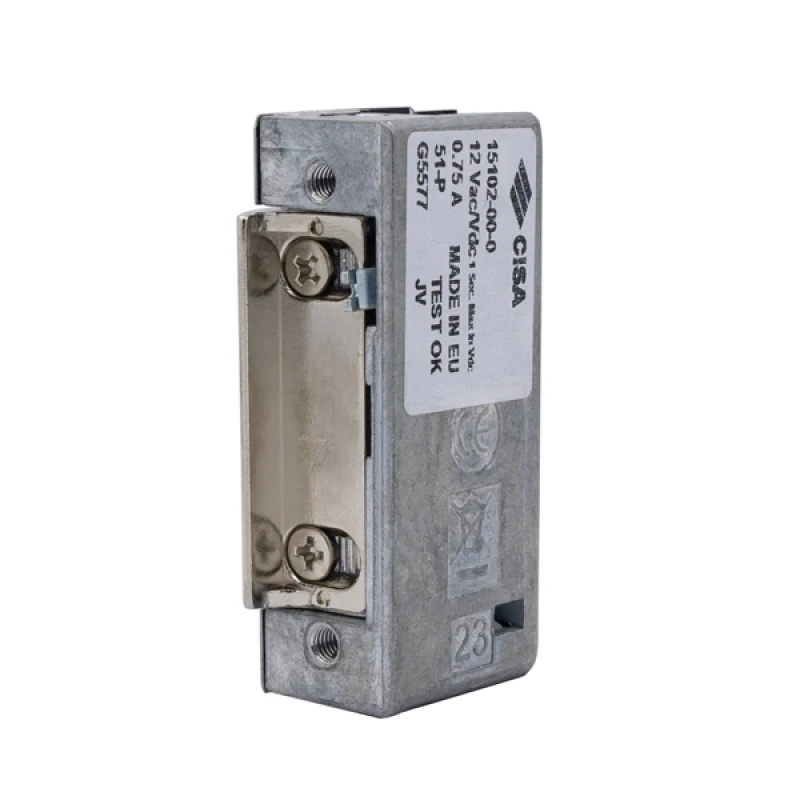 Електромеханічна защіпка CISA 15102 – це елемент системи контролю доступу, який забезпечує надійну фіксацію дверей в зачиненому стані. Встановлюється врізним методом в коробку металевих, дерев’яних та металопластикових дверей. Сумісна з більшістю стандартних врізних замків, в яких присутній язичок. Підходить для ліво та правосторонніх дверей.
