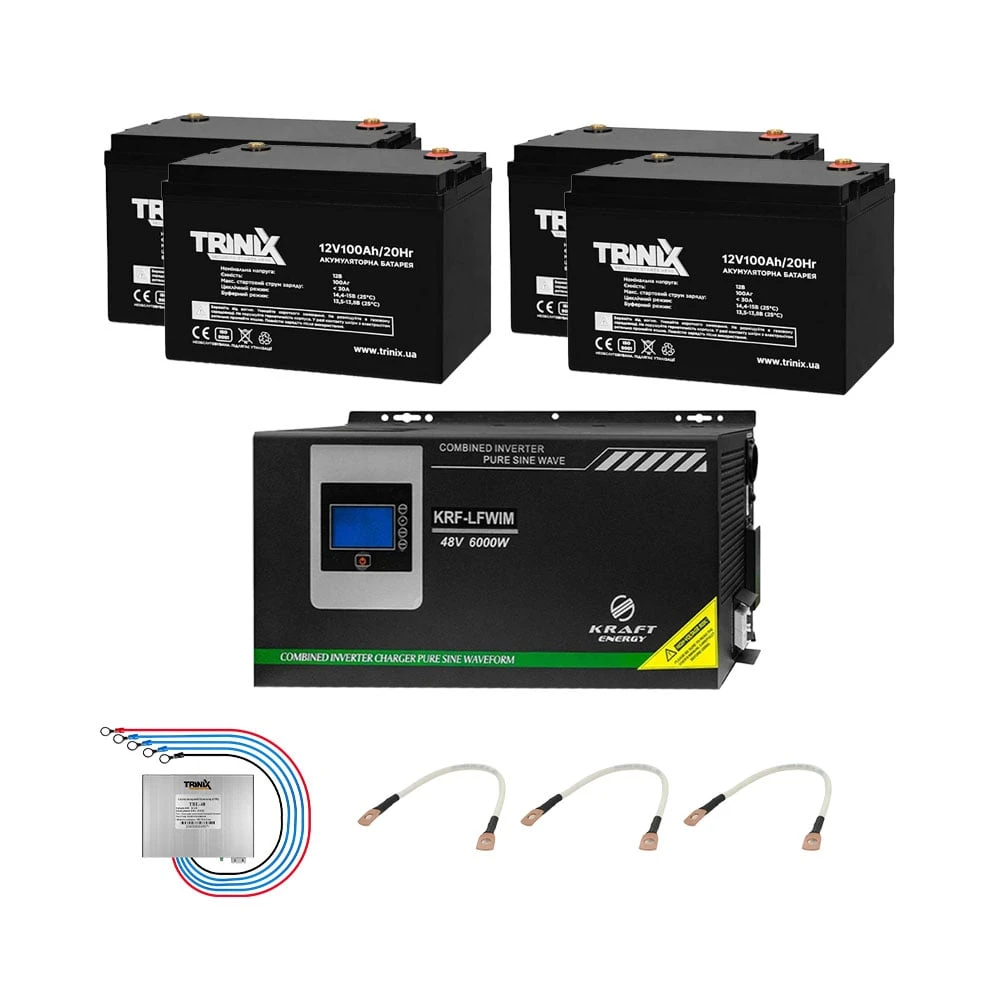Комплект резервного живлення: гібридний інвертор на 6kW Kraft + 4 шт. 12В 100Аг Trinix 12V100Ah/20Hr AGM