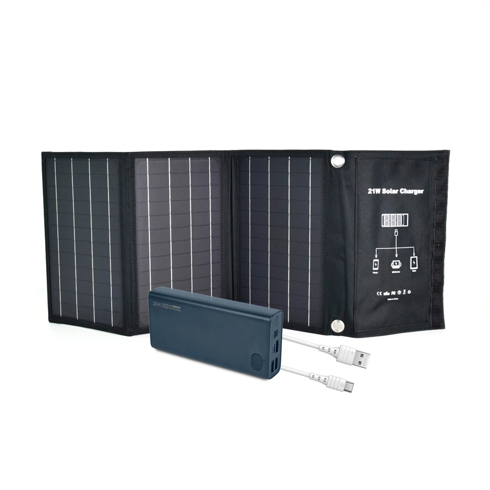 Комплект: сонячна панель 21W Solar Charge, повербанк FEB-292B 20 Вт + 22.5 Вт, кабель REMAX RC-068W