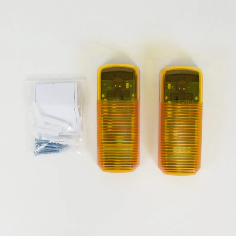 Ці фотоелементи являють собою пару інфрачервоних датчиків, що монтуються по обидва боки в'їзду. Під час роботи приводу один із датчиків випромінює інфрачервоний сигнал, який потім приймається другим датчиком. Це створює невидимий промінь, що перетинає в'їзд. У разі спроби перетину цього променя під час руху через огорожу, реле розімкнеться, що призведе до припинення руху стулки або стріли шлагбаума, забезпечуючи безпеку користувача і транспортних засобів.