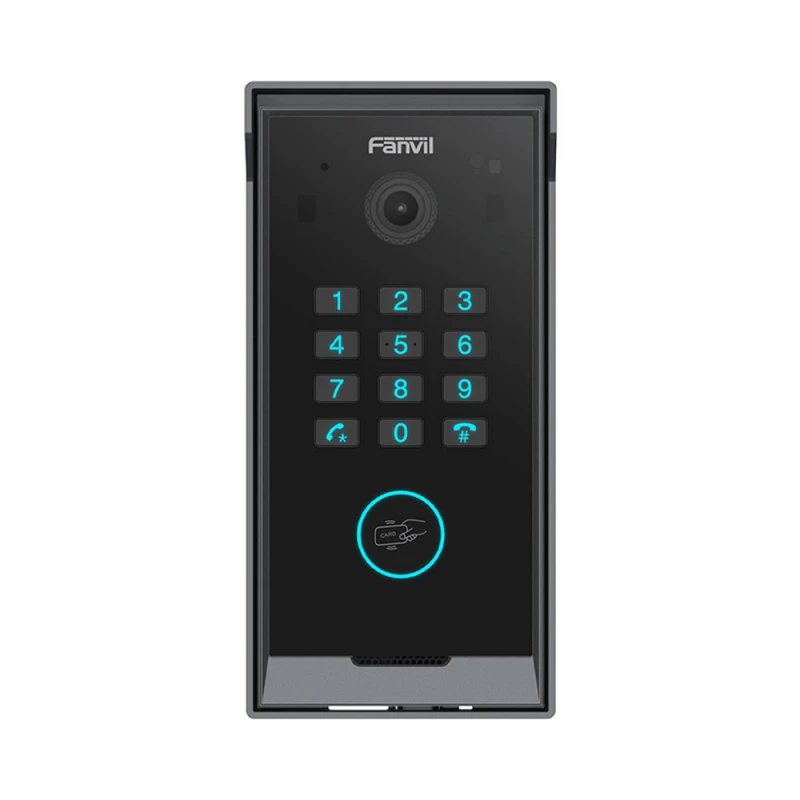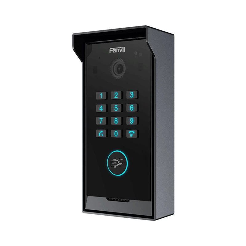 IP панель виклику Fanvil i60K — сучасна IP-панель виклику з цифровою клавіатурою, призначена для організації надійного контролю доступу в багатоквартирних будинках, офісах і житлових комплексах. Модель оснащена 2-мегапіксельною HD-камерою з підтримкою HDR і інфрачервоним підсвічуванням, що забезпечує високу якість зображення і впевнене відеоспостереження навіть при слабкому освітленні. Широкий кут огляду 140 градусів виключає сліпі зони та дозволяє бачити всю вхідну зону, а вбудований детектор руху миттєво фіксує появу відвідувачів. Вандалозахищена панель з класом захисту IP65 розрахована на експлуатацію в діапазоні температур від -40 до +70°C, що гарантує стабільну роботу в будь-яких умовах, як всередині приміщення, так і на вулиці.