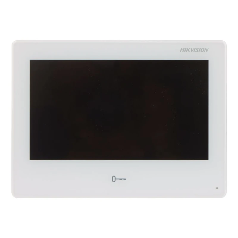 домофон DS-KH9310-WTE1(B) оснащений кольоровим TFT-екраном з діагоналлю 7 дюймів, з роздільною здатністю 1024х600 пікселів;