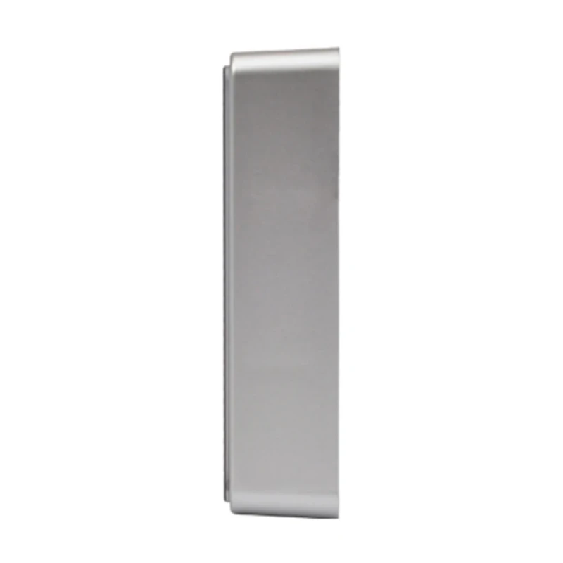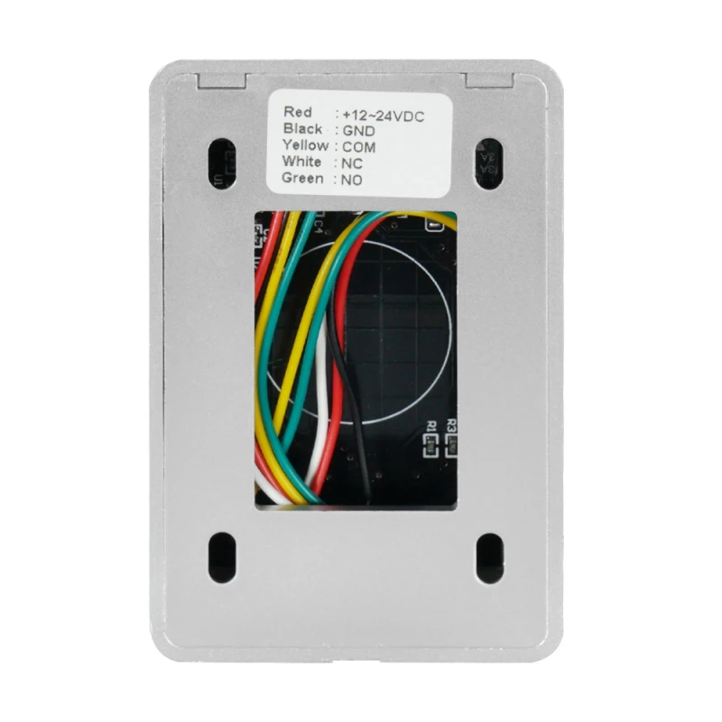 Монтаж відбувається накладним способом на двері. Невеликий корпус прямокутної форми виконаний із міцного пластику у чорному кольорі. Пристрій допускається до експлуатації усередині приміщення. При успішному спрацьовуванні кнопки спалахує зелене підсвічування напису; якщо не спрацювало - синє підсвічування. Розміри: 86 / 56 / 21 мм.