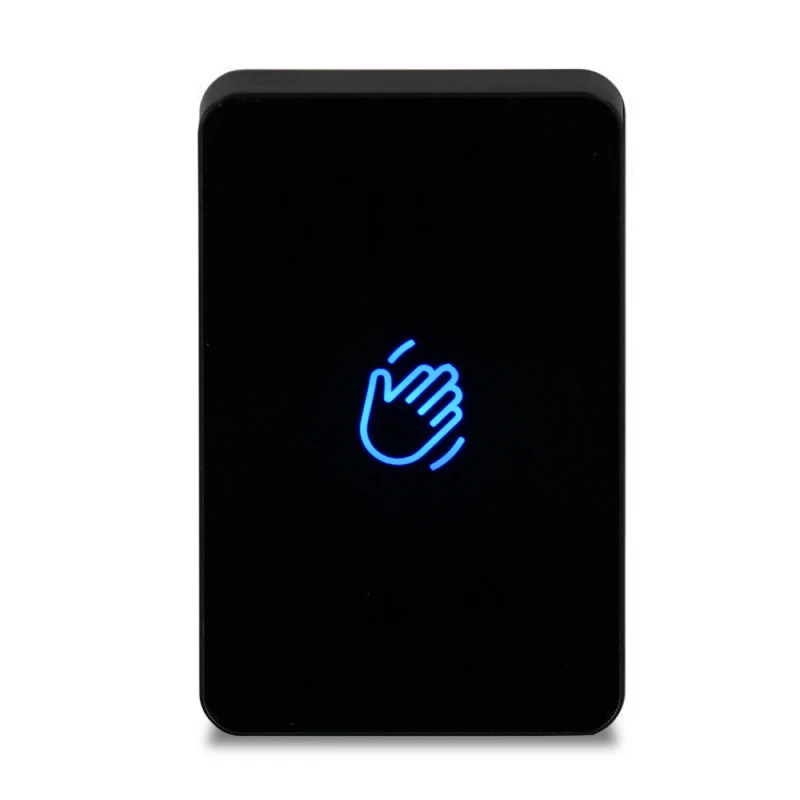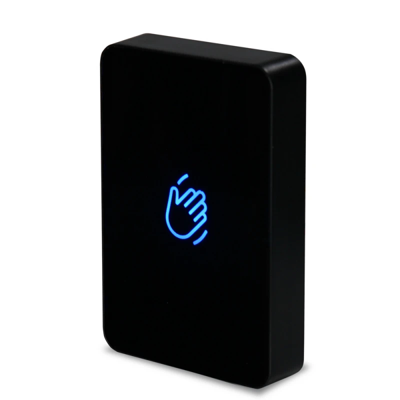 Кнопка виходу безконтактна (регулювання чутливості 12-35 см), накладна, антивандальна, двокольорове діодне підсвічування, матеріал корпусу - пластик. Тип контакту - Н/Р (нормально розімкнений), Н/З (нормально замкнений). Таймер затримки 0-30 сек. Розміри 86 / 55 / 14 мм. Колір корпусу чорний.