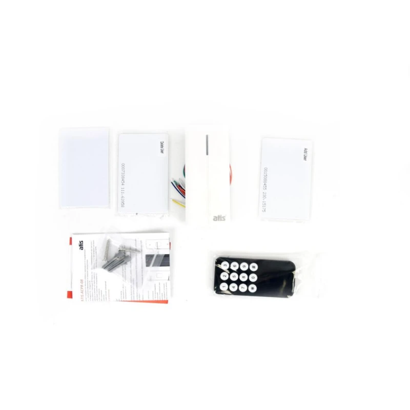 контролер-зчитувач, 2 майстер-карти, пульт управління, кріпильний комплект, інструкція