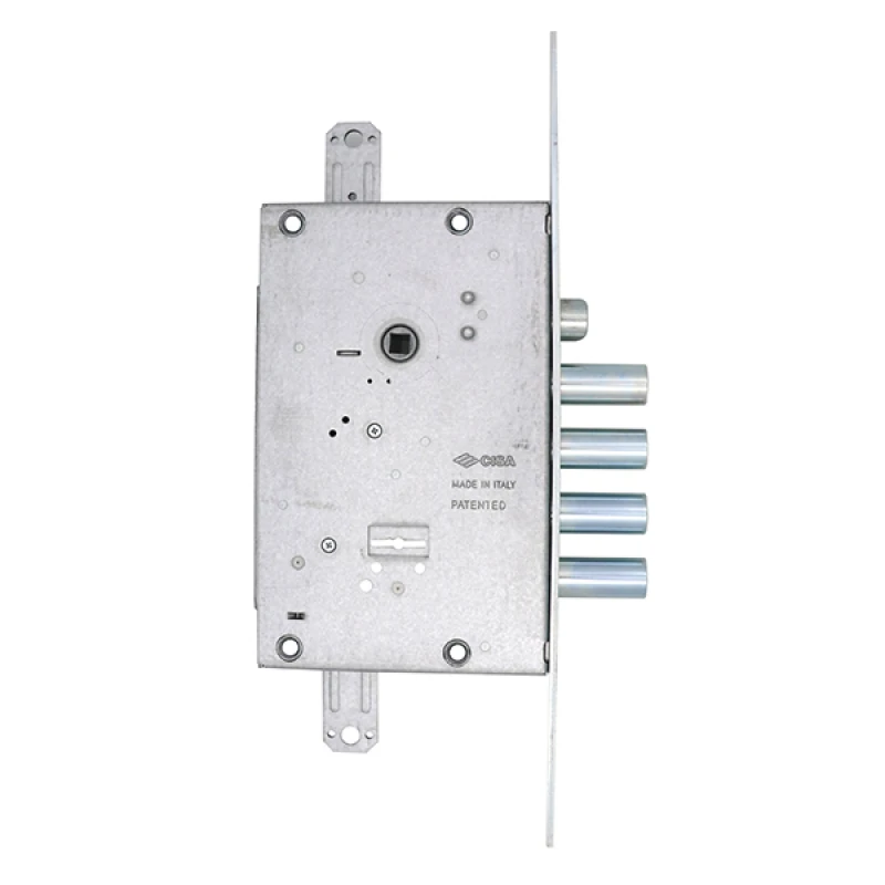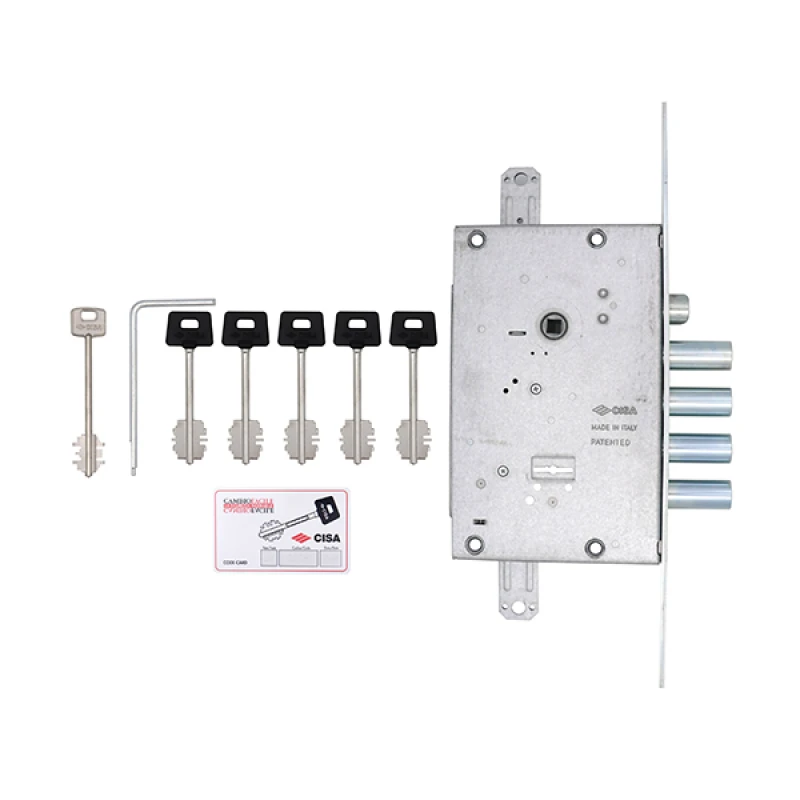 Врізний механізм італійського виробництва CISA 57685 ALPS – це 4-х ригельний замок із сувальдним типом закривання та язичком. Має можливість до перекодування. Керується ручкою і ключем. Замок встановлюють на металеві вхідні двері в якості основного. Особливістю цієї моделі є система захисту блокування сувальд ALPS. Її принцип роботи заснований на відмінності в роботі оригінального ключа і відмичок. Замок блокується майже миттєво і безшумно при спробі застосування відмичок і характерного впливу на кодовий механізм замка. Є захист від злому методом “згортку”. Ригелі витримують фронтальний тиск в 1000 кг та бічний – 600 кг. Гартована стійка та пакет з пластин завадять свердлінню стійки хвостовика. CISA 57685 можна встановити як в ліві, так і праві двері завдяки тому, що язичок можно перевернути без розбирання замка. Для додаткового захисту від висвердлювання майстри рекомендують встановлювати захисну пластину CISA Anti-Drill.