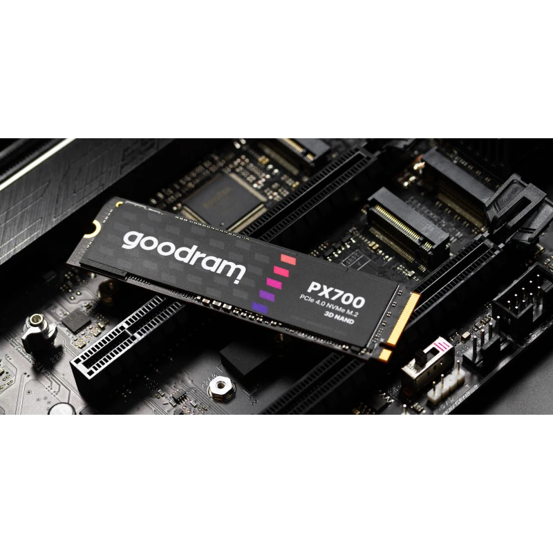 Goodram PX700 PCIe Gen 4 x4 NVMe відноситься до SSD-накопичувачів останнього покоління, що забезпечують неперевершену продуктивність та сумісність. Завдяки універсальному формату накопичувач PX700 можна використовувати у широкому спектрі додатків, де вирішальне значення мають швидкість, продуктивність та пропускна спроможність. PX700 - ідеальне рішення для настільних комп'ютерів, робочих станцій та ноутбуків, особливо тих, які використовуються для графічного дизайну, редагування відео або розвинених розваг. PX700 означає надзвичайно швидку передачу даних, швидке завантаження ігор та програм, а також підвищену продуктивність комп'ютера. Goodram PX700 також відповідає вимогам розширення пам'яті консолі PlayStation5. Використання SSD значно підвищує якість та продуктивність ігрового процесу, одночасно покращуючи враження від консолі.