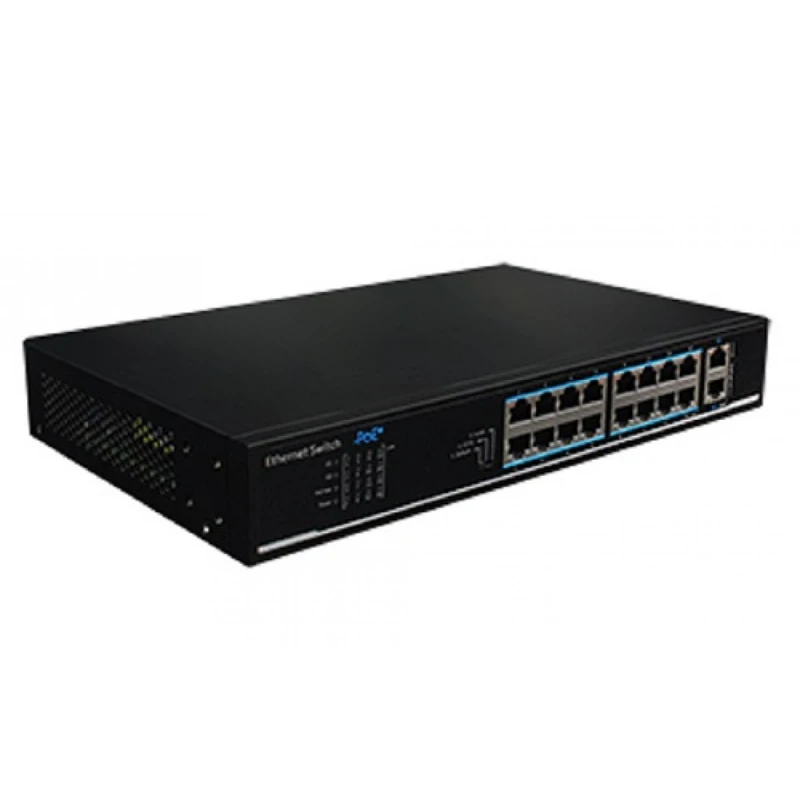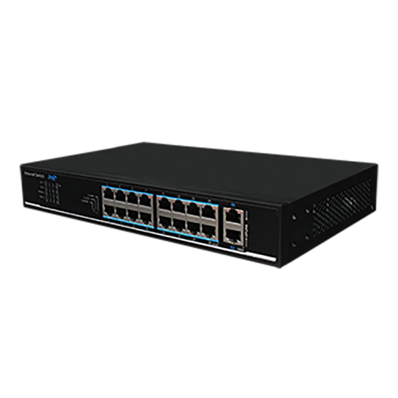 16x10/100Base-T Ethernet-порти (PoE), 2x10/100/1000Base-T (Uplink)