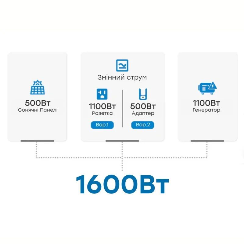 1 порт автомобільної зарядки 12В/10А, 2 порти DC5521 12В/3А, 1 порт XT60 12В/10А