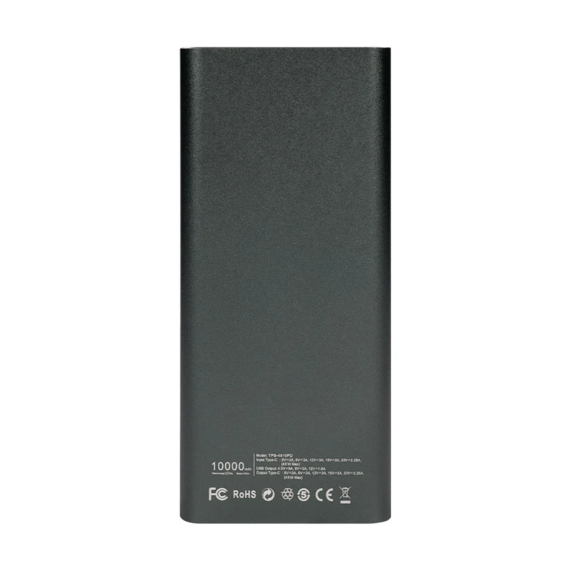 Повербанк Trinix TPB-4510PD Black з ємністю батареї 10000 мАг, літій-полімерна технологія, інтерфейси: вхід/вихід Type-C PD 45 Вт 5 В/2.4 А, 9 В/3 А, 12 В/3 А, 15 В/3 А, 20 В/2.25 В; вхід USB Type-A 5 В/3 А, 9 В/2 А, 12 В/1.5 А. Підтримується режим PPS та режим для роботи обладнання з малим струмом споживання. USB-кабель Type-C to Type-C у комплекті.