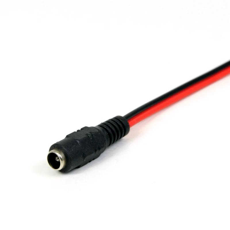 Роз'єм живлення (мама, female) Power jack 2.1*5.5mm з проводом 20 см призначений для під'єднання різного устаткування, такого як системи відеоспостереження, зарядні пристрої та інші побутові пристрої, до постійного джерела живлення змінного струму 12/24В (DC).