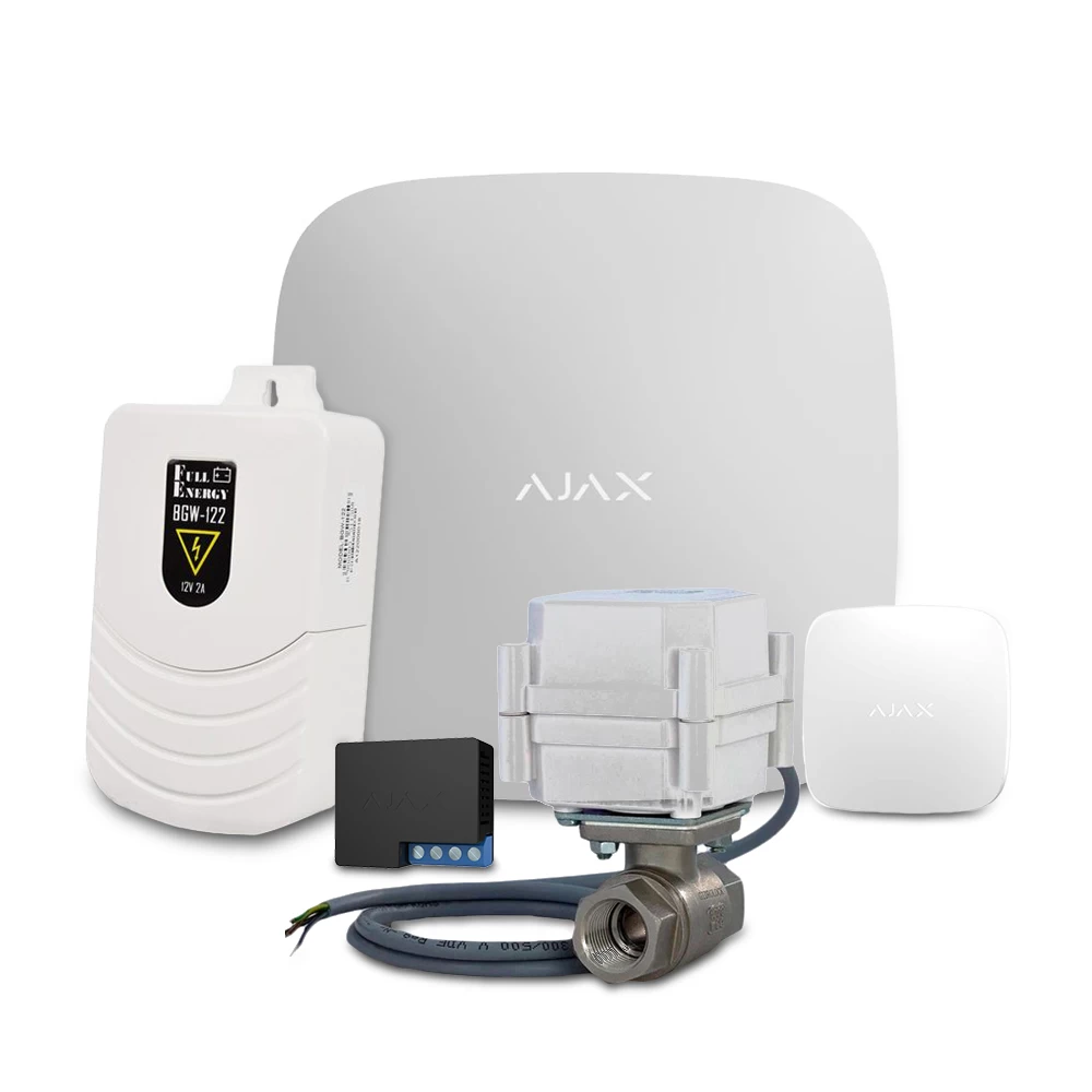 Комплект антизатопления: шаровой кран BUGATTI ШЭП ¾” ULTIMATE 12 В, централь Ajax Hub, датчик затопления Ajax LeaksProtect (white), беспроводное реле Ajax Relay, блок питания BGW-122