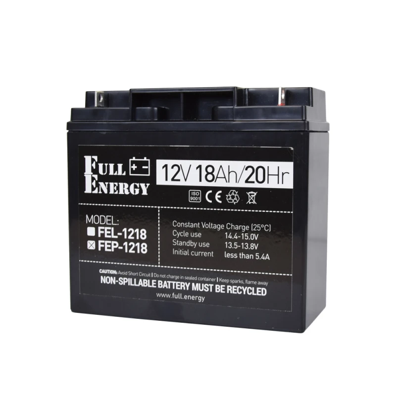 Аккумулятор FEP-1218 от компании Full Energy применяется для установки в бесперебойные блоки питания, пульты охранной сигнализации, компьютерные бесперебойники (UPS), детские электромобили, в составе преобразователей и т.п.