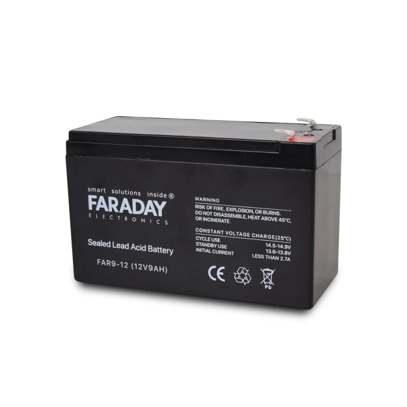 Аккумулятор FAR9-12 от компании Faraday Electronics применяется для установки в бесперебойные блоки питания, пульты охранной сигнализации, компьютерные бесперебойники (UPS), детские электромобили, в составе преобразователей и т.п.