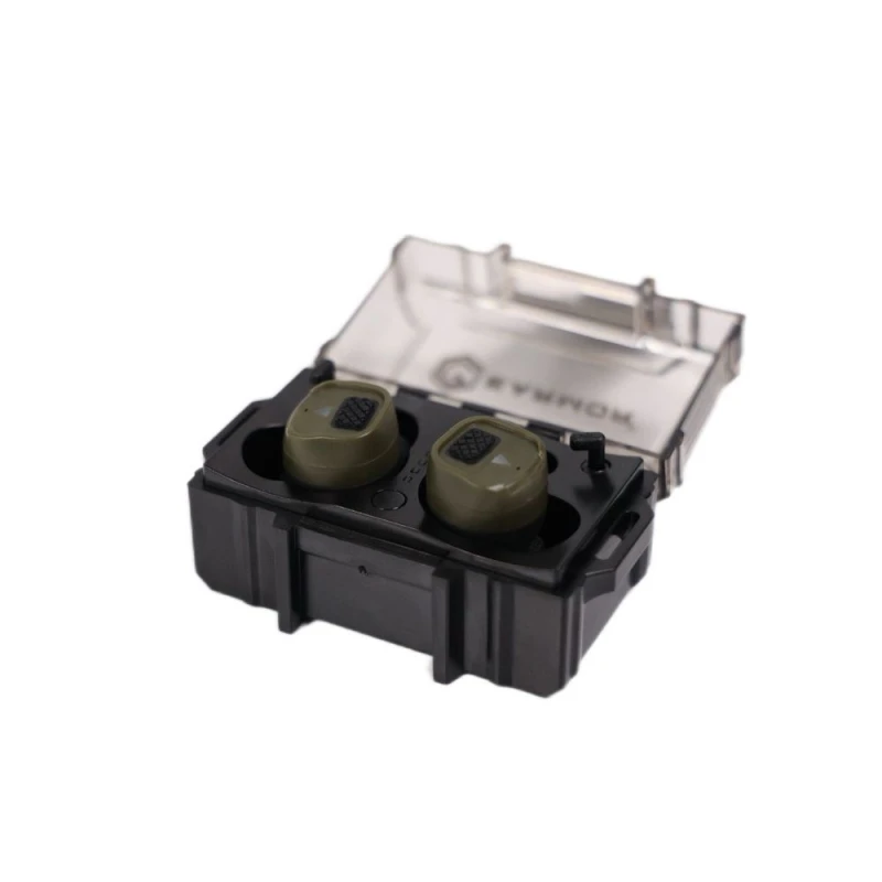 Активні захисні беруші (навушники) з вбудованим Bluetooth 5.3. Рівень шумоподавлення 26 дБ (NRR). Інтуїтивно зрозуміле керування однією кнопкою. Автоматичне вимкнення після 2 годин бездіяльності та повного заряджання. Живлення від вбудованого акумулятора. У комплекті до навушників йдуть зарядний USB-кабель, по 3 набори змінних амбушур та вкладишів, зарядний чохол, силіконовий шнур
