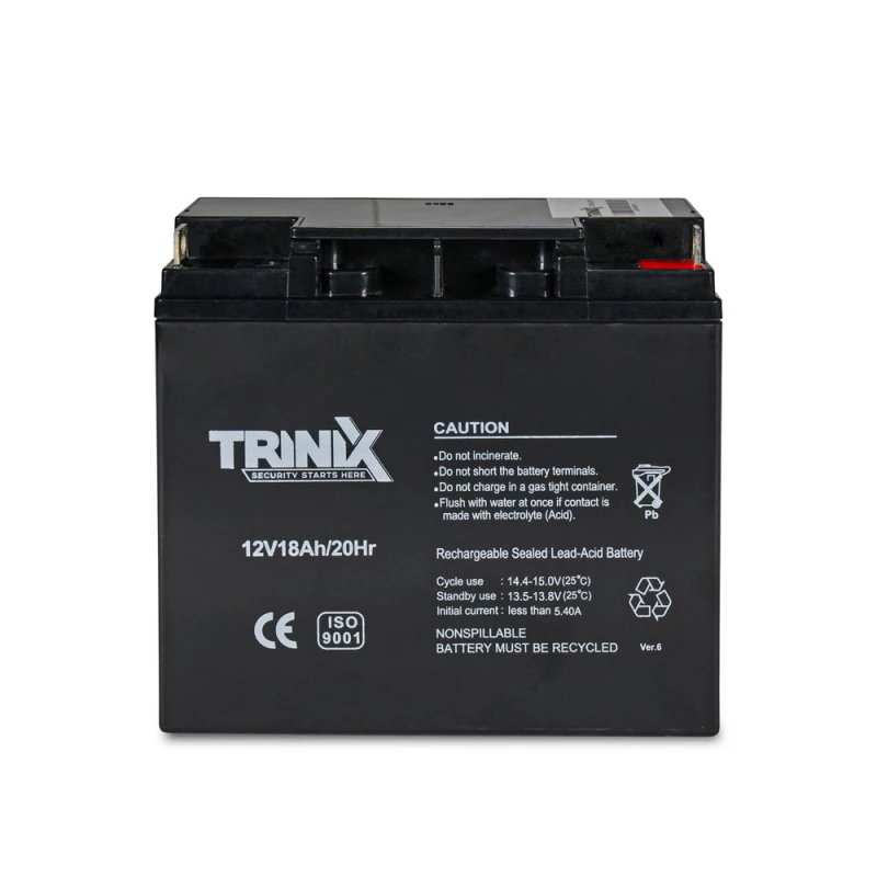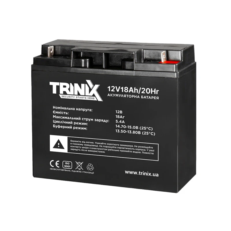 Акумуляторна батарея 12V18Ah/20Hr від TriniX – свинцево-кислотна, ємність 18 Аг, напруга 12 В.