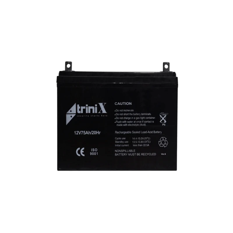 Акумуляторна батарея 12V75Ah/20Hr від TriniX – свинцево-кислотна, ємність 75 Аг, напруга 12 В.