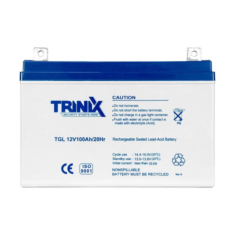 Акумуляторна батарея TGL12V100Ah/20Hr ємністю 100 Аг, з вихідною напругою 12 В GEL від TRINIX – це гелева акумуляторна батарея, призначена для забезпечення безперебійного живлення в системах охорони та пожежної сигналізації, СКУД, систем відеонагляду.