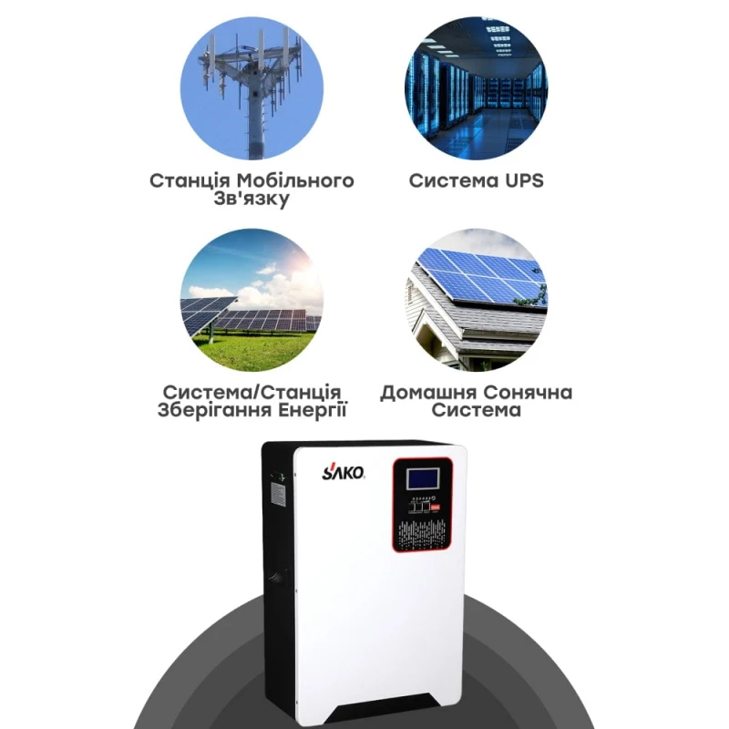 Акумуляторна батарея літій-залізо-фосфатна 120Аг 51.2В 6144Втг Sako Li-Sun 48V120AH LiFePo4 настінний монтаж