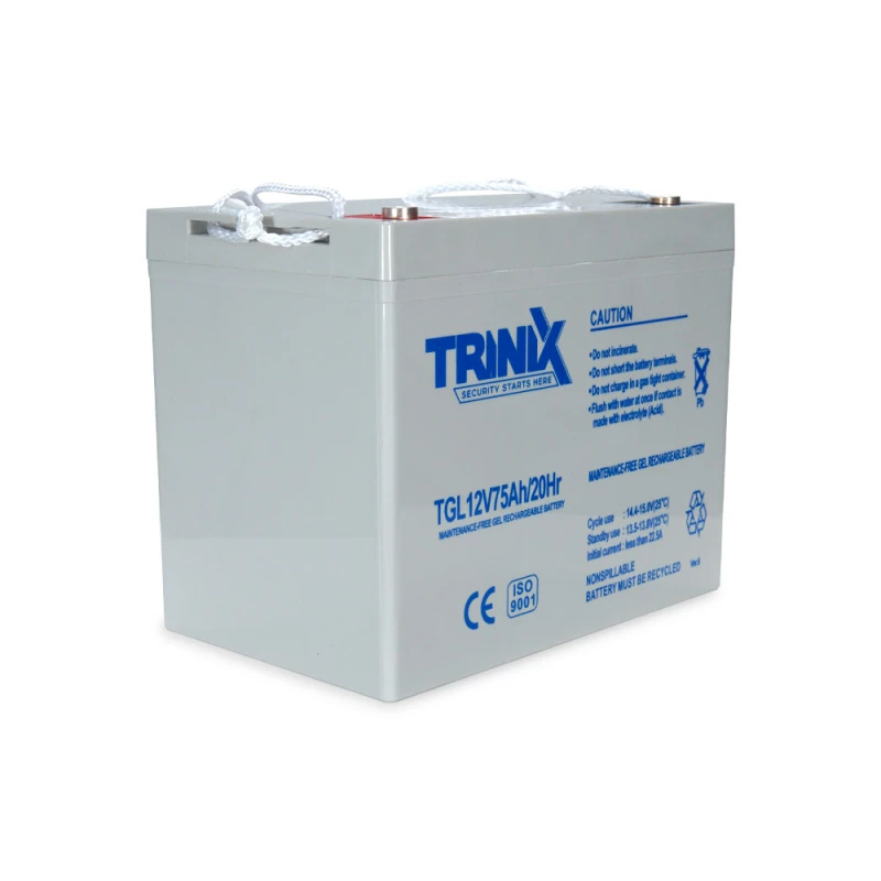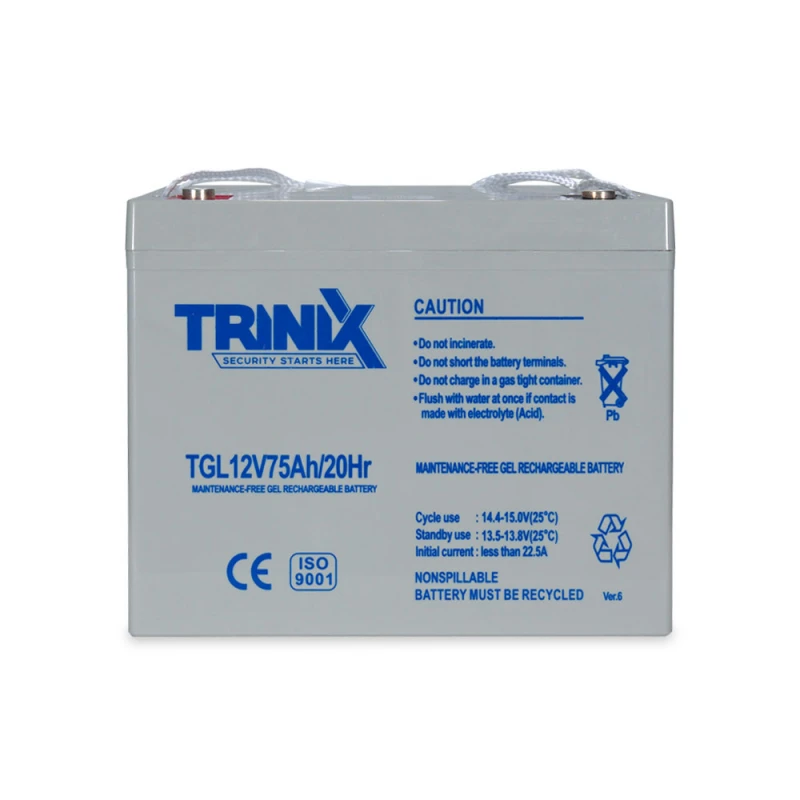 Акумуляторна батарея TGL12V75Ah/20Hr ємністю 75 Аг, з вихідною напругою 12 В GEL від TRINIX – це гелева акумуляторна батарея, призначена для забезпечення безперебійного живлення в системах охорони та пожежної сигналізації, СКУД, систем відеонагляду.