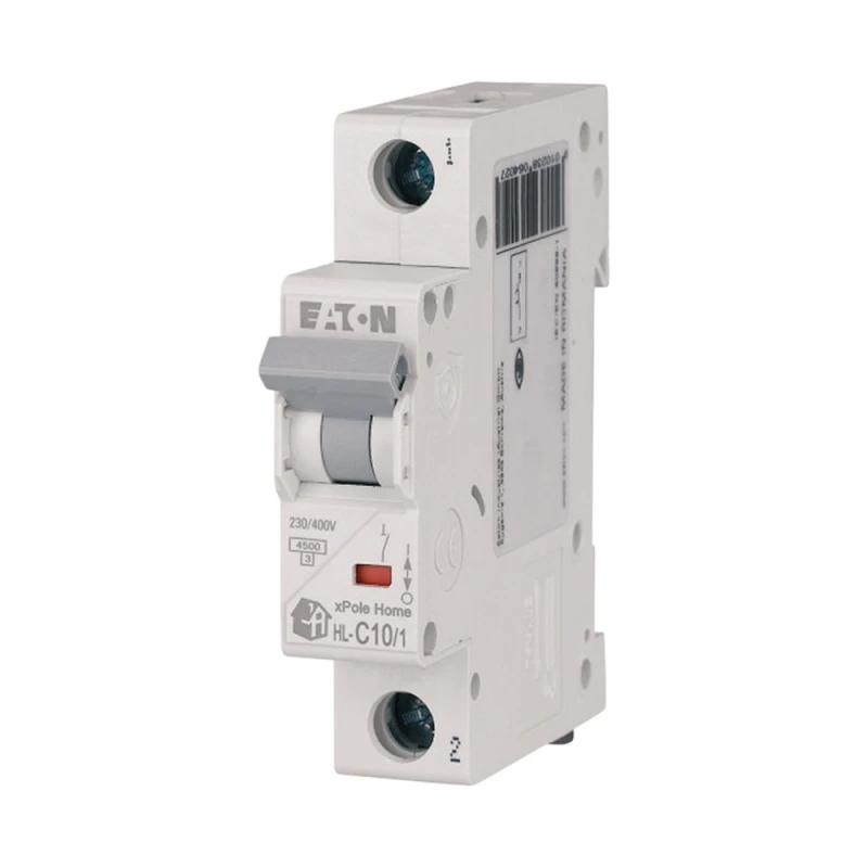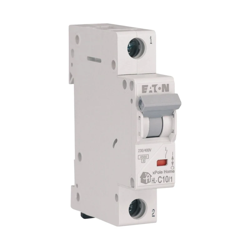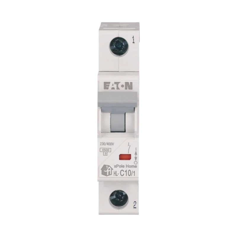 Автоматичний вимикач HL-C10/1 Eaton 1P 10А C призначений для захисту однофазних електричних мереж змінного струму 230 В від перевантажень і коротких замикань. Модель має один полюс і номінальний струм 10 А, підходить для підключення побутових і окремих комерційних навантажень потужністю до 2,2 кВт. Пристрій виконано в модульному виконанні шириною 17,5 мм і монтується на стандартну DIN-рейку.