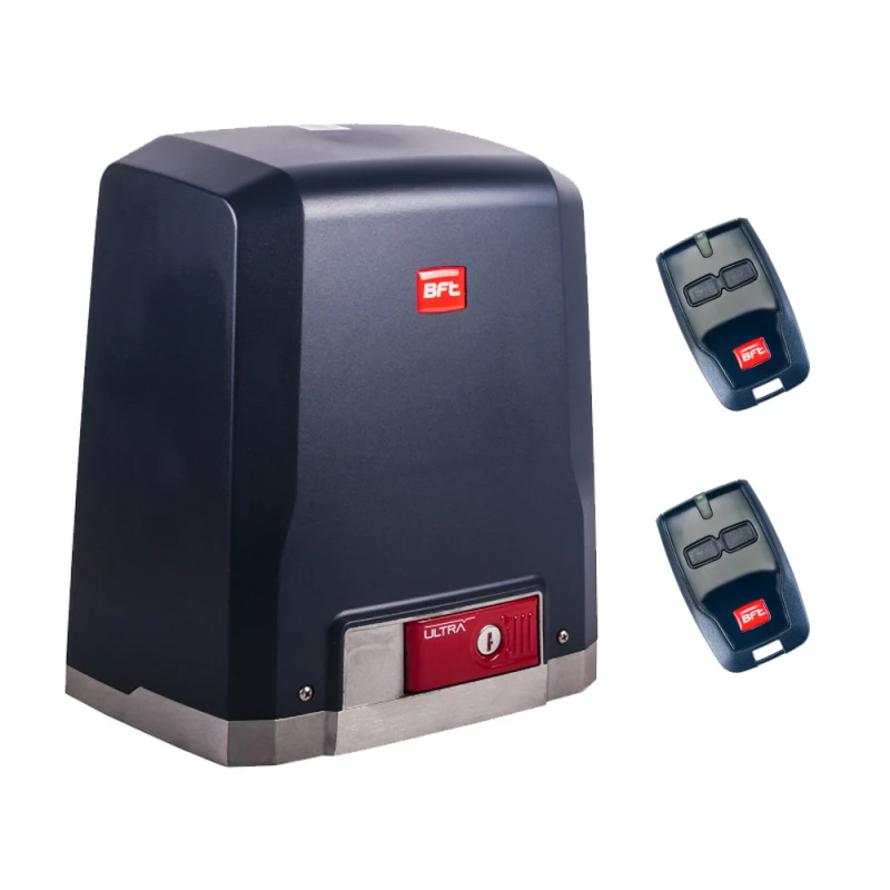 Привод BFT DEIMOS ULTRA BT A400 - 1 шт, Встроенный блок управления с механическим выключателем - 1 шт, Встроенный 2-х канальный приемник (до 63 пультов) - 1 шт, Пульт ДУ 2-х канальный - 2 шт