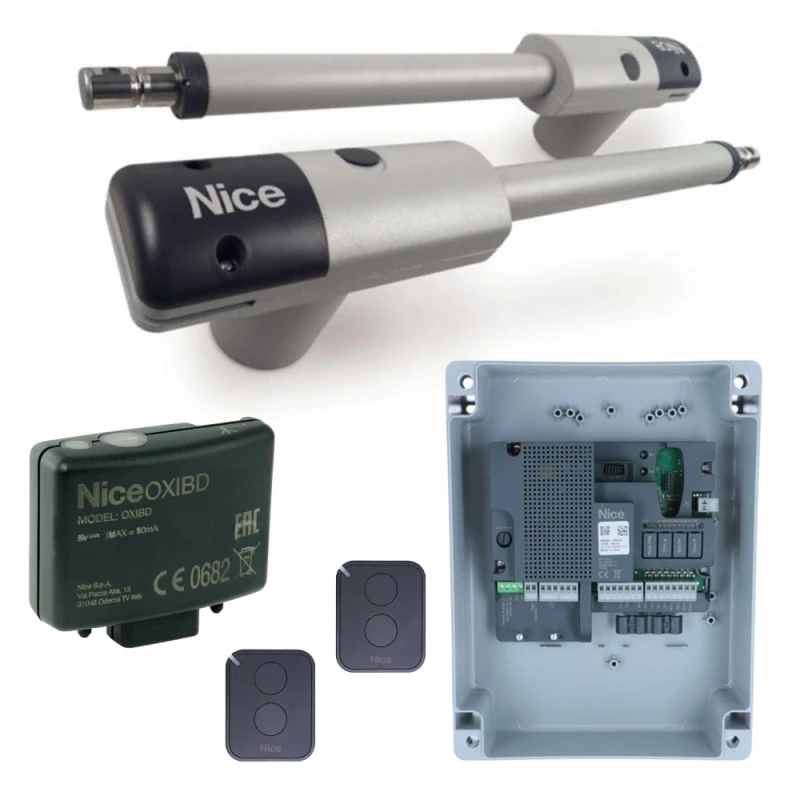 Привод с самоблокирующимся редуктором Nice Too 3000 - 2 шт., Блок управления Nice MC800 - 1 шт., Приемник встраиваемый 4-канальный Nice OXIBD - 1 шт., Пульт дистанционного управления Nice FLO2RE - 2 шт.
