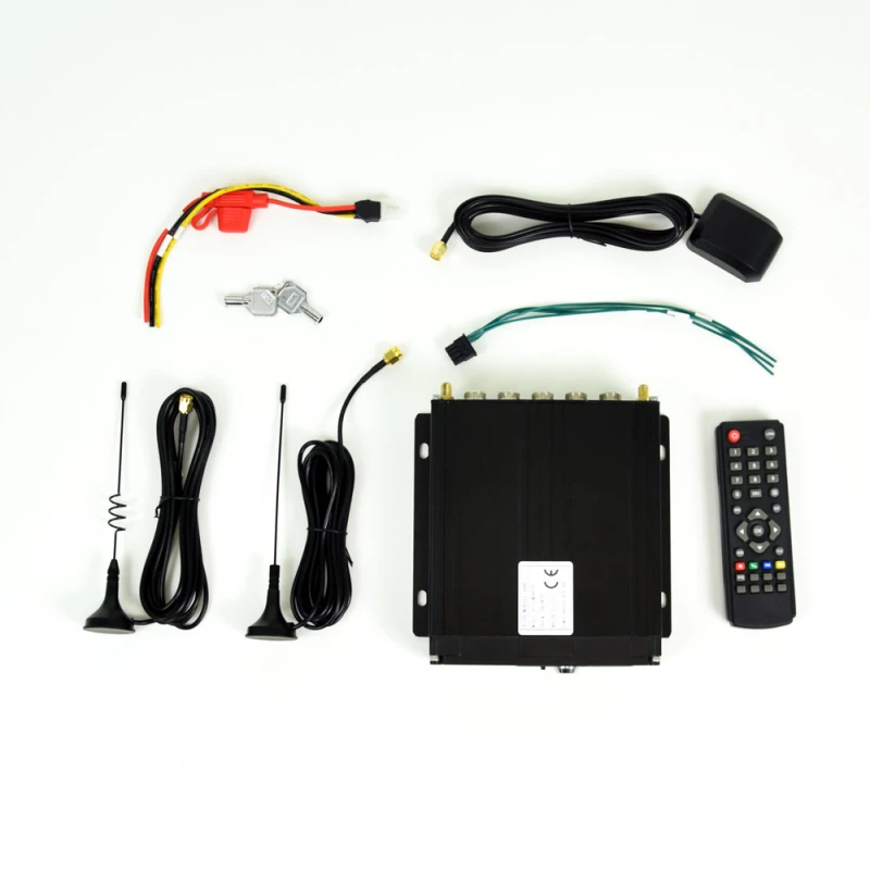 Регистратор видеонаблюдения на транспорте ATIS AMDVR-04 WIFI/4G/GPS , поддерживающий подключение до 4-х AHD или аналоговых видеокамер наблюдения до 2МП и хранение архива на 2-х полноразмерных SD картах до 512Гб (рекомендуется 2 х 256 Гб). Авторегистратор оснащен встроенными Wi-Fi/4G приёмниками (антенны в комплекте, SIM карту нужно приобретать отдельно) для связи с программным сервером, обеспечивающим удалённый доступ через приложения для iOS, Android и Windows или Web к онлайн и архиву камер, отображению маршрута передвижения и текущего местоположения транспортного средства на карте, для чего имеет в комплекте антенну с GPS приёмником.