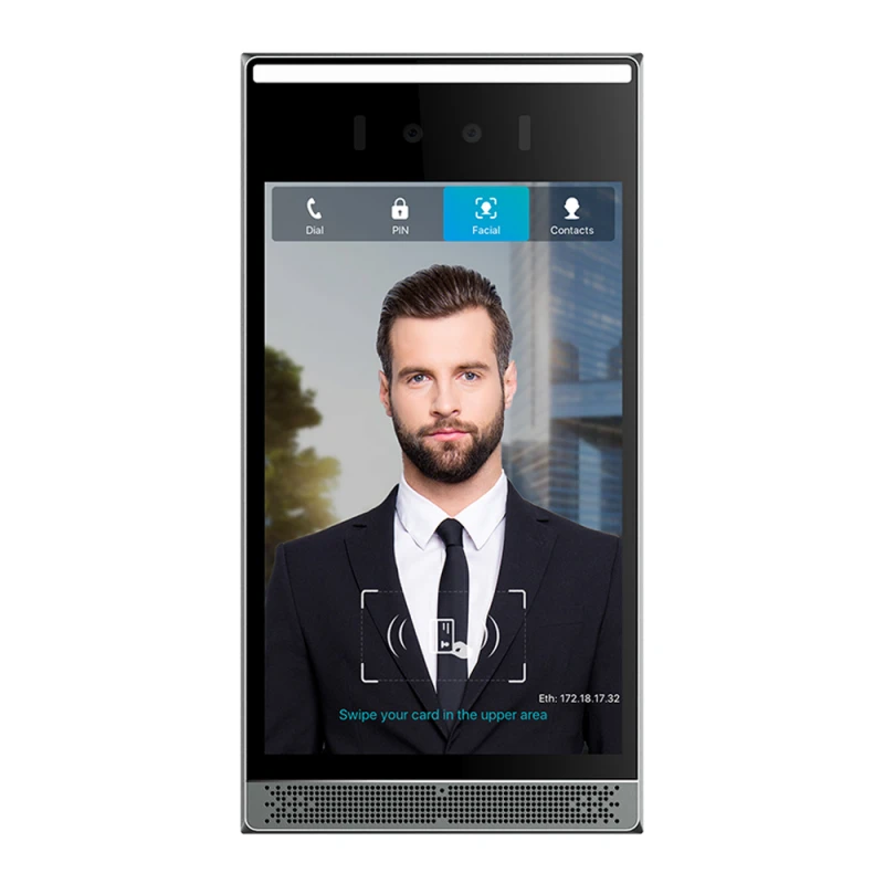 Багатоабонентська IP панель виклику Fanvil i68 — флагманський SIP-відеодомофон з розпізнаванням облич і великим 8-дюймовим сенсорним IPS-екраном, призначений для сучасних житлових комплексів, офісних будівель і готелів, де потрібен максимальний рівень безпеки та сучасний функціонал. Пристрій оснащений високоточною системою розпізнавання облич з технологією антиспуфінгу, яка захищає від спроб обману за допомогою фотографій, відео або масок, і гарантує тільки авторизований доступ. Завдяки підтримці безлічі способів відчинення дверей — за обличчям, карткою, PIN-кодом, QR-кодом, Bluetooth або віддаленою командою через DTMF — домофон гнучко інтегрується в будь-які сценарії контролю доступу.