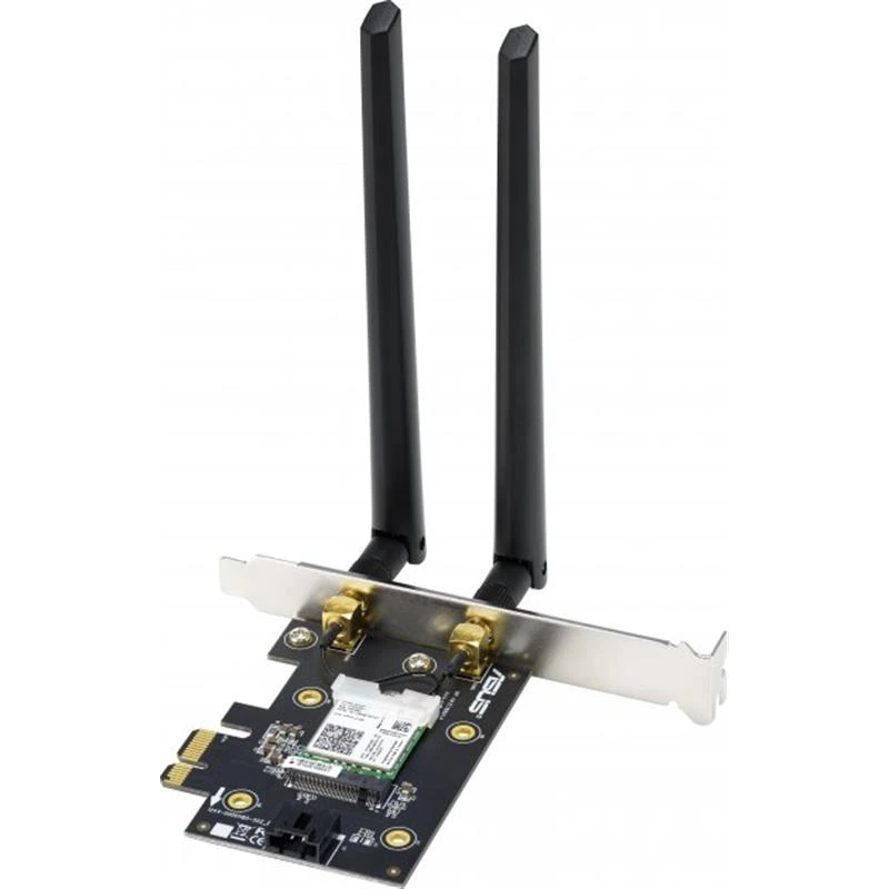 Високошвидкісний адаптер Wi-Fi Виконаний у форм-факторі плати розширення PCIe, адаптер PCE-AX1800 пропонує відразу два сучасних бездротових інтерфейси: Wi-Fi 6 (802.11ax) і Bluetooth 5.2. Швидкість передачі даних у бездротових мережах Wi-Fi 6 в 1,5 раза перевершує можливості мереж Wi-Fi 5 (802.11ac). Адаптер PCE-AX1800 підтримує лише стандарт PCI-Express x1, тому його слід установлювати у слот PCIe x1. Ефективна робота в завантажених мережах Комбінація технологій MU-MIMO та OFDMA забезпечує підвищену пропускну здатність і більш ефективне її використання в разі бездротових мереж із великою кількістю одночасно працюючих клієнтів. Миттєвий апгрейд Bluetooth – вище швидкість, краще звук Крім Wi-Fi, адаптер дозволяє наділити комп’ютер інтерфейсом Bluetooth. Інтерфейс представлений новітньою версією 5.2, яка відзначається у два рази більшою швидкістю передачі даних і в чотири рази більшим діапазоном дії в порівнянні з попередньою. Вона також є більш енергоефективною та покращує якість відтворення аудіо. Підтримка нового протоколу мережевої безпеки WPA3 Адаптер ASUS PCE-AX1800 підтримує новітній протокол безпеки WPA3, який додає ще один рівень захисту комп’ютера від зовнішніх атак.