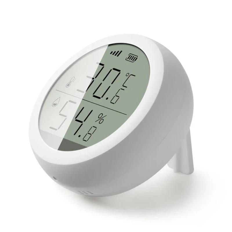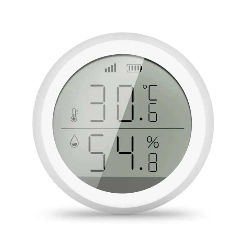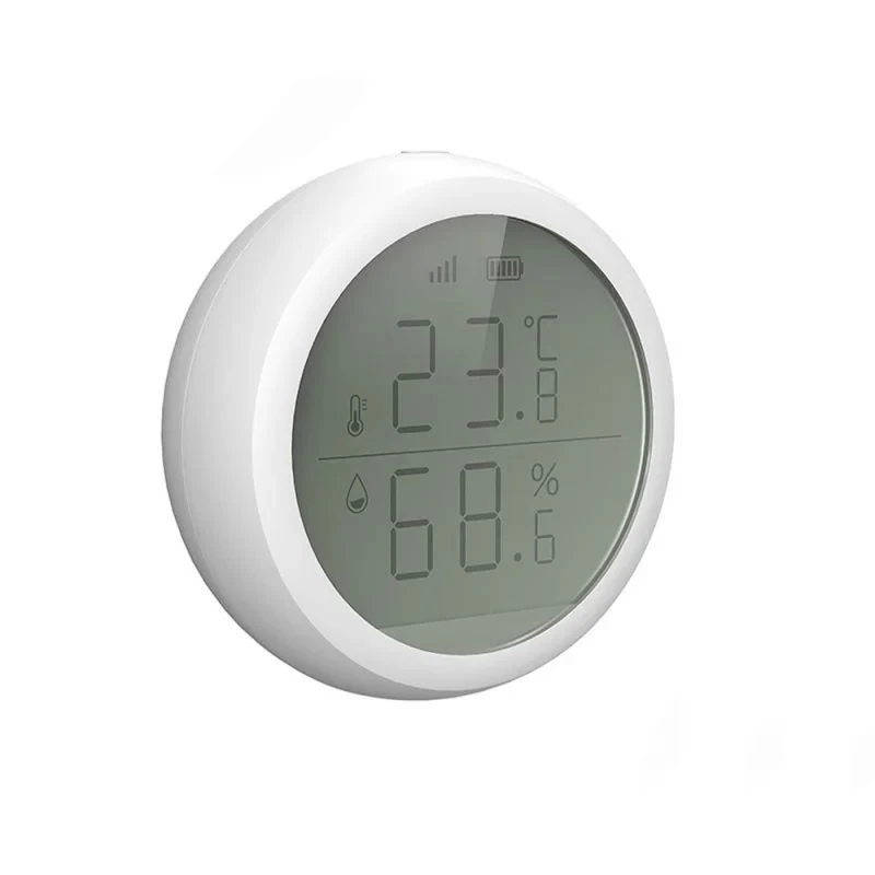 Бездротовий датчик температури та вологості з підтримкою WiFi 2.4 ГГц (IEEE 802.11b/g/n) та можливістю керування і налаштування через мобільний застосунок Tuya; працює без підключення до централі; LCD-дисплей; вбудована сирена 55 дБ; живлення 2 батареї AAA 1.5V, у комплекті; робоча напруга 3 В; сповіщення про низьку напругу менше 2.2 В; струм споживання у режимі очікування 75 мкА, у режимі тривоги 130 мА; USB-вхід DC5V/2A; вимірювання температури -10C°~+55°C; вимірювання вологості 0%~99.9%; розміри Ø61.2 / 23 мм
