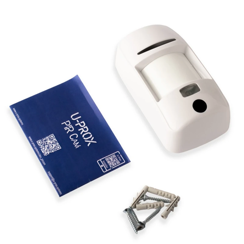 Комбінований цифровий інфрачервоний пасивний радіоканальний датчик руху U-Prox PIR Cam White з фотофіксацією, нечутливий до тварин вагою до 20 кг. Обладнаний PIR-сенсором та камерою, призначений для охорони закритих житлових та виробничих приміщень.