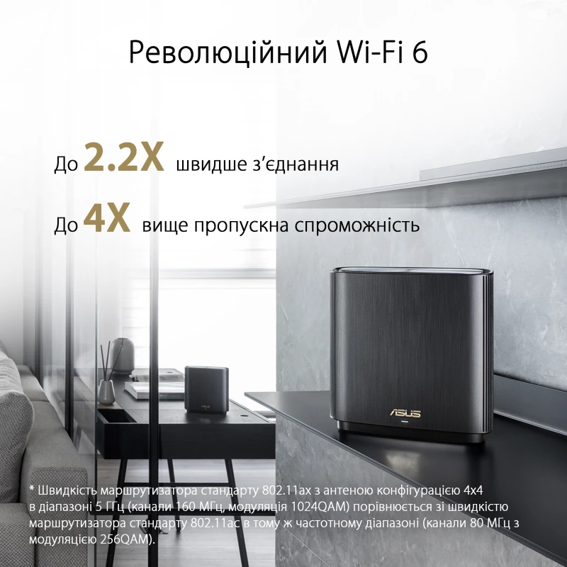 ZenWiFi XT8 - це Mesh-система, яка дозволить організувати захищену, швидкісну та надійну бездротову мережу у великому будинку. Оснащена гнучкими можливостями найменування, адже доступне використання одного імені для всії мережі або окремі імена для кожного частотного діапазону. Налаштування системи здійснюється один раз - всі вузли системи синхронізуються один з одним автоматично. Кожен вузол системи може працювати і в якості основного маршрутизатора, і в якості додаткового. Підтримує бездротовий стандарт Wi-Fi 802.11ax, який гарантує стабільну й ефективну передачу даних на високій швидкості. Підтримується захисна технологія AiProtection Pro, яка є повністю безкоштовною. Надає гнучкі засоби батьківського контролю, дозволяючи легко контролювати все, що відбувається в мережі за допомогою зручного мобільного додатку. Важливо, що система підтримує смарт-сервіси Alexa і IFTTT. Для швидкої обробки даних кожен маршрутизатор системи ZenWiFi оснащений високопродуктивним чотирьохядерним процесором, а вертикальний корпус розроблений таким чином, щоб забезпечити максимально сильний бездротовий сигнал і хорошу вентиляцію.