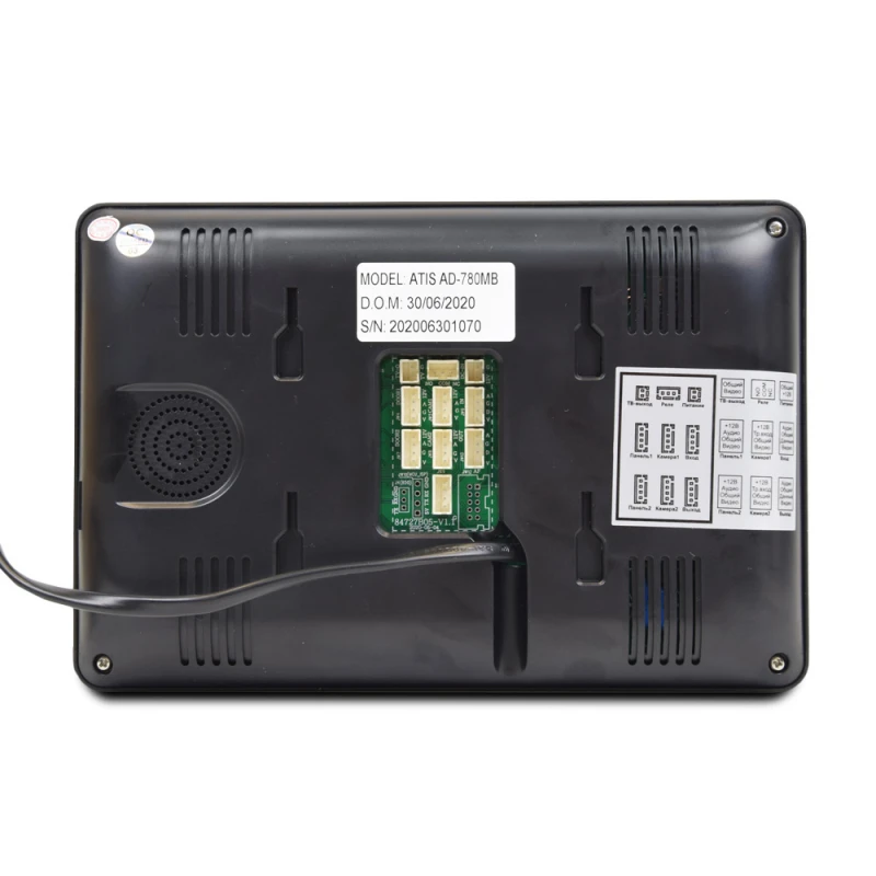Видеодомофон ATIS AD-780FHD Black с цветным 7-дюймовым IPS-экраном. Возможности подключения: 2 AHD/TVI/CVI видеопанели с разрешением 1080p или аналоговые вызывные панели, 2 AHD/TVI/CVI камеры с разрешением 1080p или аналоговые видеокамеры, 2 датчика тревоги и 1 дополнительный монитор (телевизор). Интерком на 6 видеодомофонов. Цвет - черный.