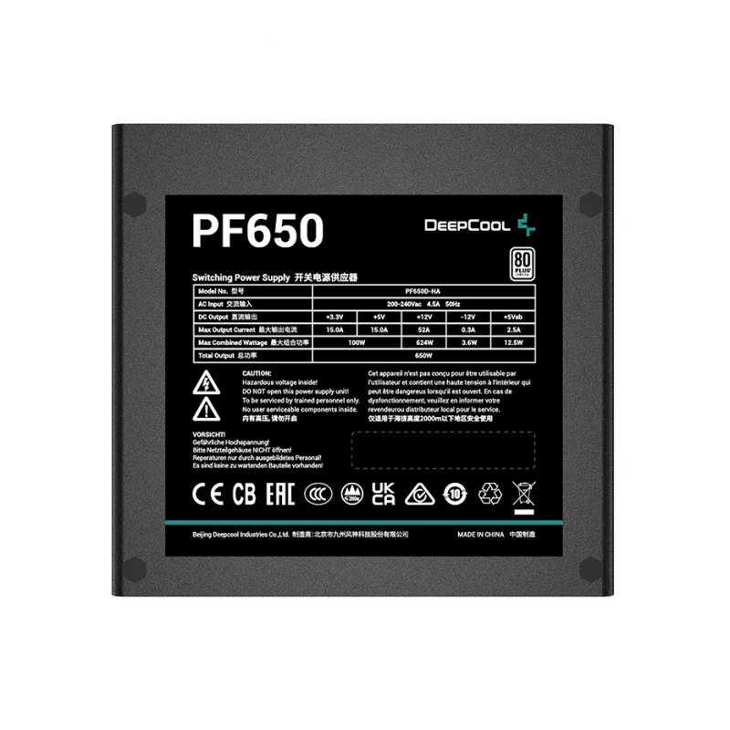 Блок живлення серії DeepCool PF забезпечує безпечне та стабільне живлення з надійною стандартною ефективністю 80 PLUS і доступною ціною.
