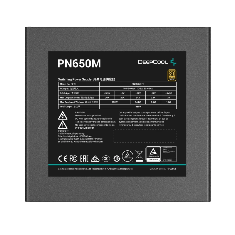 DeepCool PN650M — це новий блок живлення, який відповідає останнім стандартам Intel ATX 3.1 і PCIe 5.1. Завдяки виділеному 12V-2x6, 5 портам EPS/PCIe, PN650M забезпечує стабільне живлення для широкого спектру сучасних компонентів високої потужності.