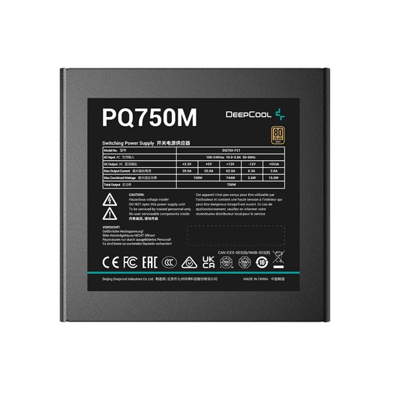 Модульний блок живлення DeepCool PQ-M серії 80 PLUS Gold, що представляє нове покоління надійності живлення, забезпечує високу ефективність і стабільність для продуктивних систем ПК, яким потрібна надтиха робота з безшумними режимами вентилятора.