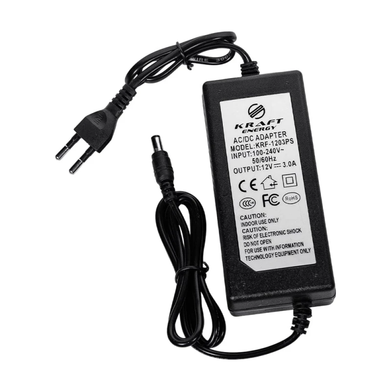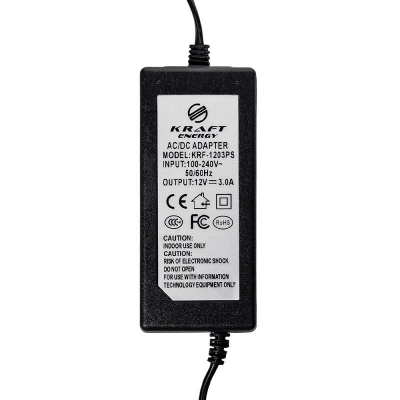 Імпульсний блок живлення Kraft KRF-1203PS, вихідна напруга 12 В, вихідний струм 3 А.